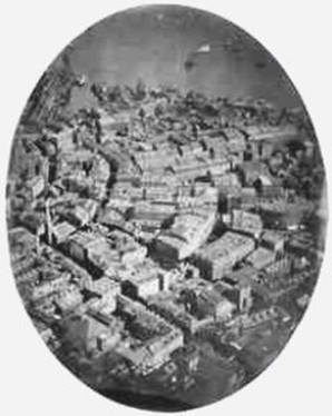 “Boston is a center of invention and innovation. This photograph was taken in 1860 by James W. Black from the balloon, Queen of the Air, owned by Samuel Archer King. This image is the first successful aerial photograph taken from a balloon in the United States (Black had attempted to photograph Providence Rhode Island from the air before this). The original photo is part of the Boston Public Library collection.” From Celebrate Boston Website.