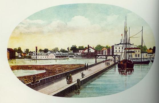 Wisconsin. The unnamed sidewheeler on the left is typical of what the Berlin City may have looked like.